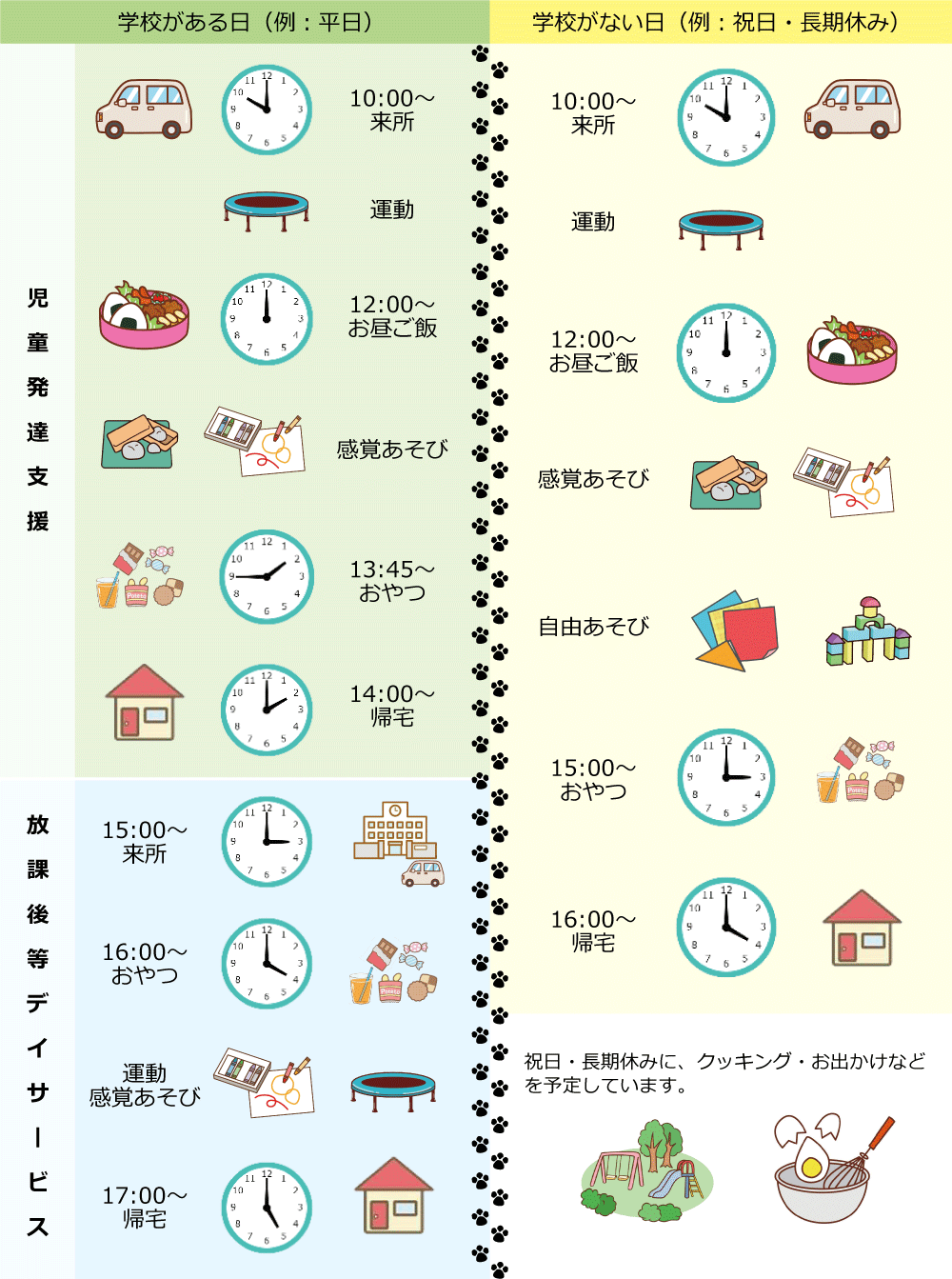 主な1日のスケジュール例になります。個別に調整いたします。
