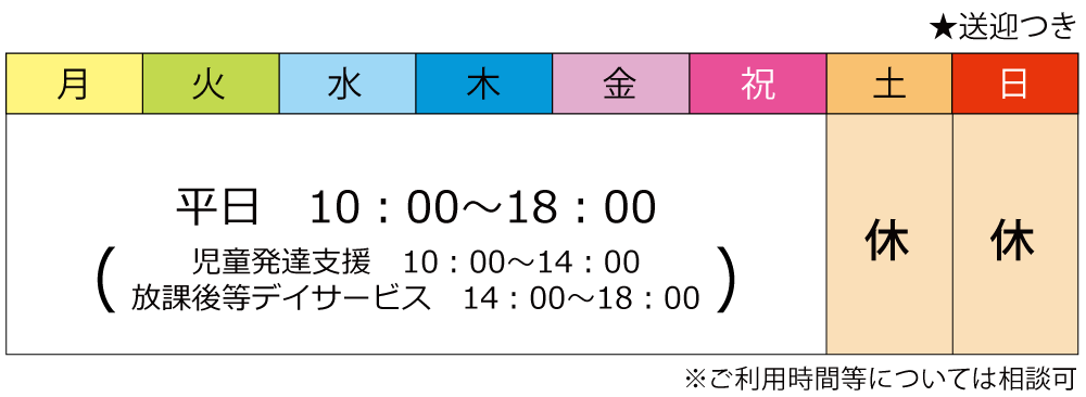 短時間でのご利用、学校やご自宅への送迎も行っておりますのでお気軽にご相談ください。